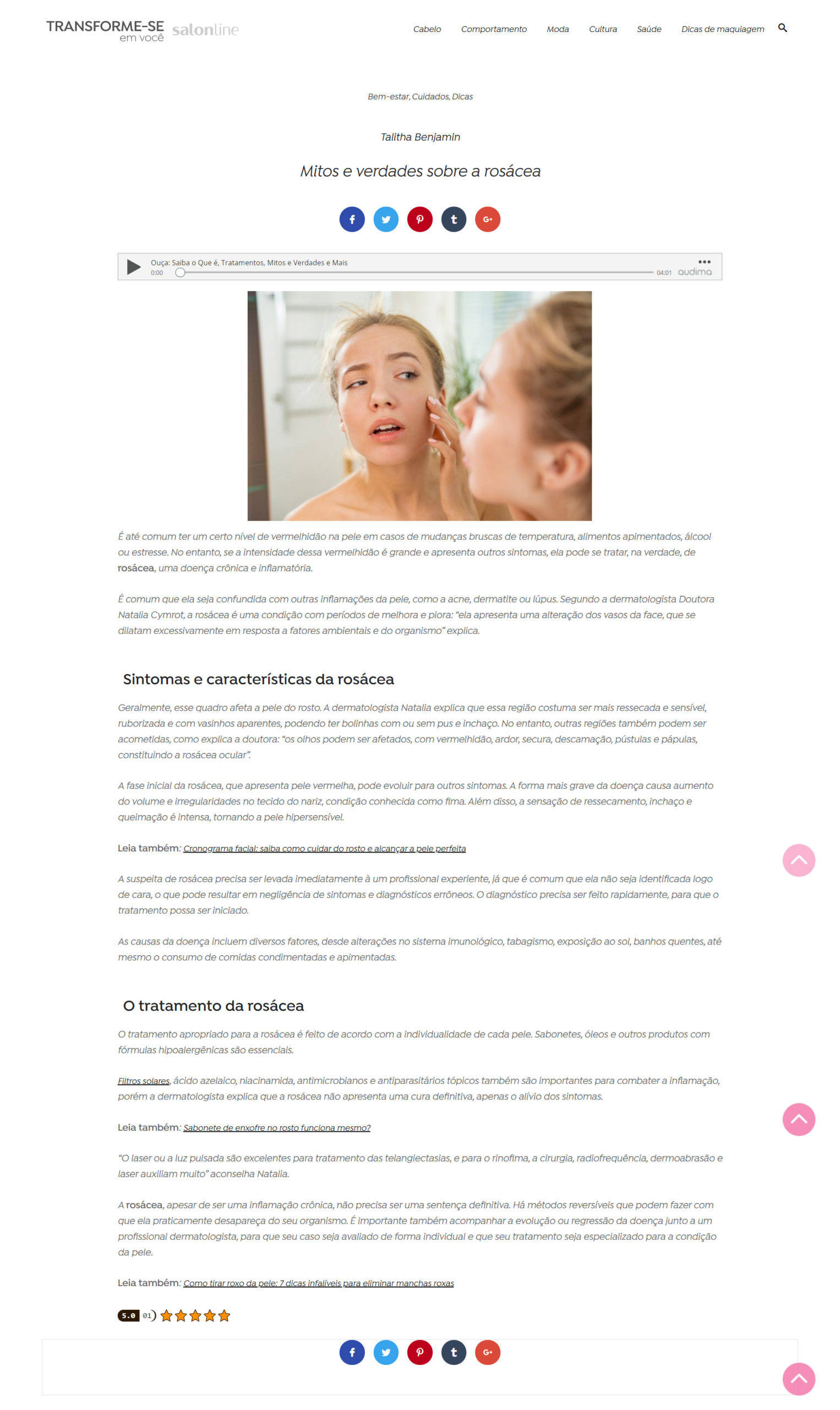 Dra. Natália Cymrot fala sobre os sintomas e características da Rosácea no blog da Salon Line, fique por dentro.